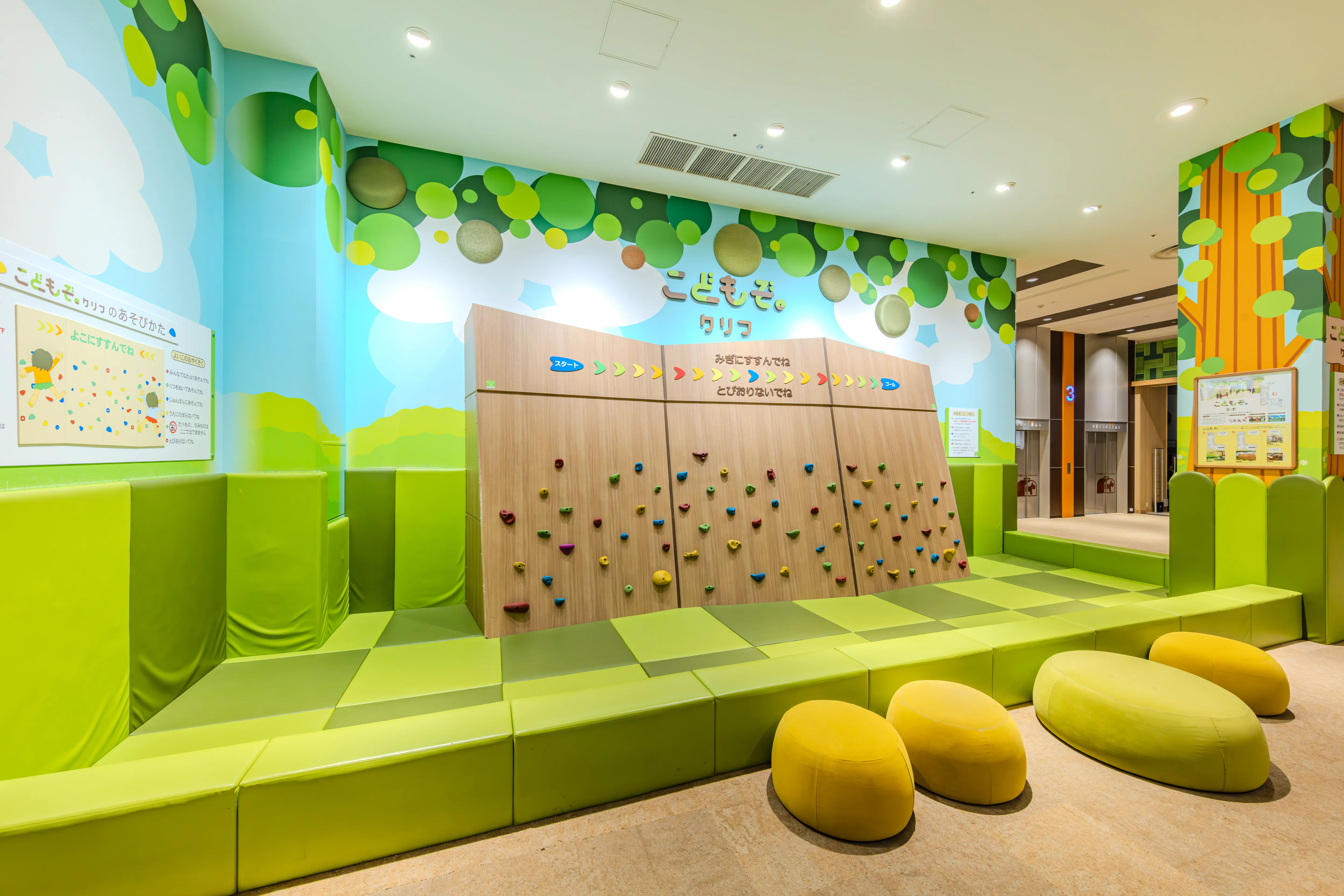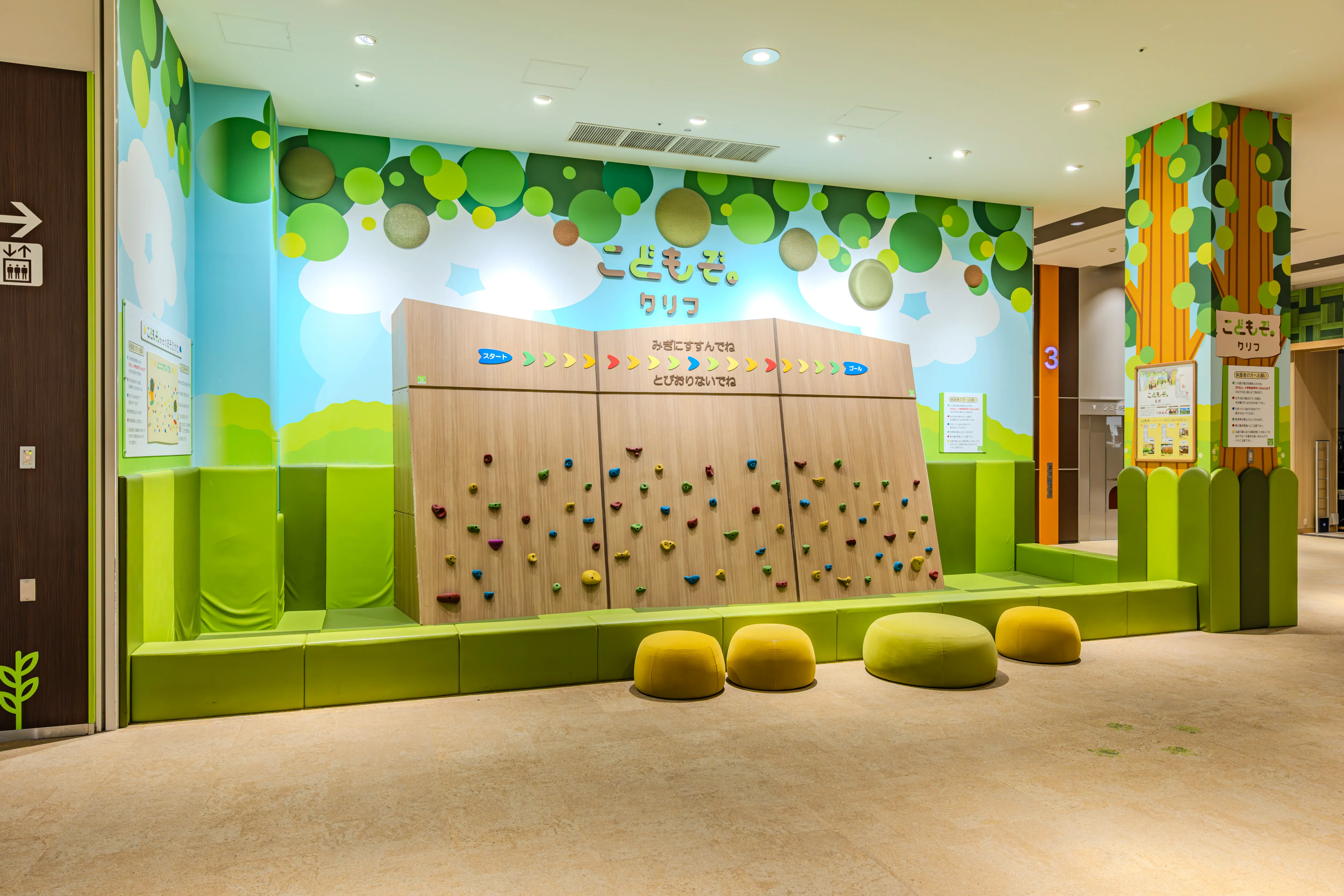 みんなでのぼれるキッズ用クライミングウォール、下はウレタンマットなので安心です!